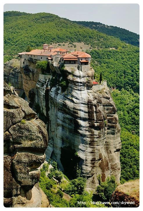 솟아오른 기묘한 바위 기둥 꼭대기에 위태롭게 들어 선 수도원들을 보면 이곳이 왜 메테오라인지 저절로 깨닫게 된다. 바위들의 평균 높이는 300m, 가장 높은 것은 550m나 되니 수도원들은 정말로 공중에 떠 있는 모습이다. 메테오라는 정확히 말하자면 그리스 중부 테살리아 지방 북서부 트리칼라 주의 바위 기둥들과 그 위에 세워진 수도원을 통칭하는 말이다.그리스 정교회 수도원들이 있어 성지순례 코스에 들기도 하는 이곳은 자연과 인간이 만들어낸 위대한 합작품이다. 황량한 벌판에 수직으로 우뚝 솟은 바위 기둥들 자체가 놀라운데, 그 위의 수도원들도 경이롭기 짝이 없다. 좁은 바위 꼭대기에 아찔하게 서 있는가 하면, 절벽 옆에 붙어 있는 형상이기도 하다. 과거에는 사람이든 물건이든 밧줄과 도르래를 이용해야만 올라갈 수 있었다는데, 저 높은 곳에 ‘왜’ 그리고 ‘어떻게’ 저런 건물들을 지었을까 궁금하다가도, 경건하고 신비로운 분위기에 숙연해지는 곳이다. 기적이 공공연히 일어날 것 같기도 하고, 저절로 깨달음이 오고 신의 목소리가 들리지 않을까 싶기도 하다.